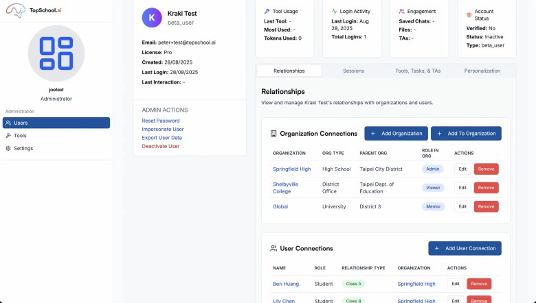 PLAI™ is built with privacy at the core. It adapts to each curriculum, local values, and governance standards. Institutions remain in full control with enterprise-grade dashboards that manage permissions, roles, and oversight at school, district, or national level.